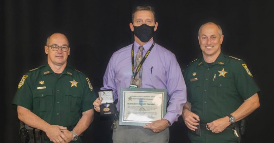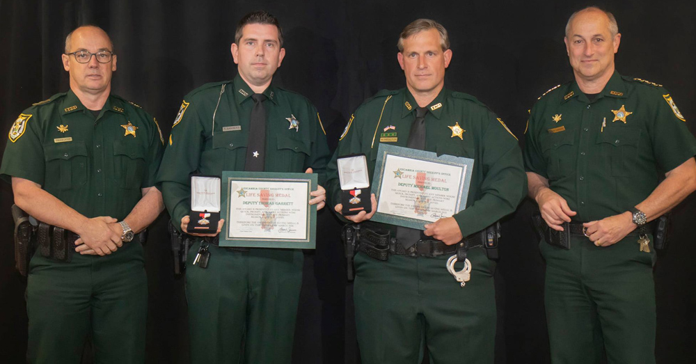Master Deputy Michael Moulton and Deputy 1st Class Thomas Garrett were awarded the Life Saving Medal for saving the life of Ronnie Golloher, who was in cardiac arrest during Hurricane Sally.