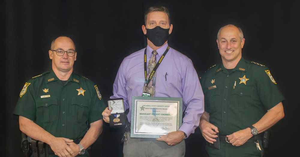 Sergeant Vincent Odenbrett was awarded the Meritorious Service Medal and Cole Chancellor was awarded the Civilian Service Medal for exceptional professionalism and meeting the complex task of keeping the Escambia County Sheriff’s Office in compliance and accredited.