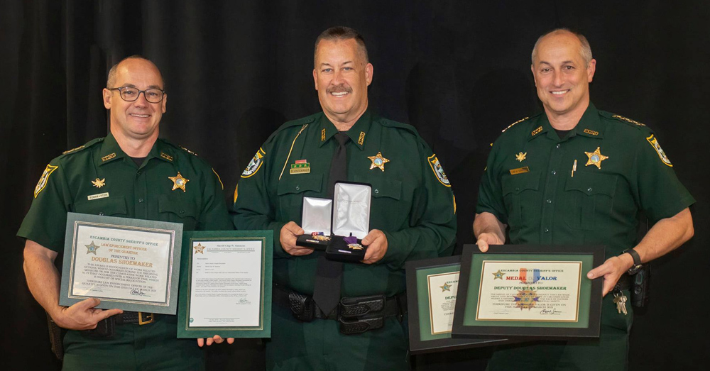 Escambia County Sheriff Chip Simmons and Chief Tommi Lyter presented awards to the following Escambia County Sheriff’s Office employees and deputies recently:
