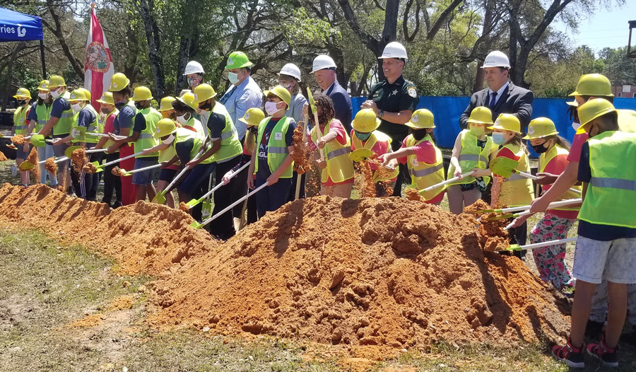 Students from nearby Belleview Elementary School helped with the groundbreaking.