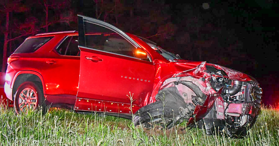 The crash happened about 8 p.m. on Highway 97 near Hendricks Lane, north of White Ash Road. The front passenger side of a SUV and the side of a passenger sedan collided, sending both vehicles off the roadway.