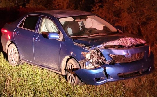 The female hit the deer on Highway 97A near Corley Road will enough force to deploy the air bags in her vehicle and cause her to run off the road about 11:35 p.m.