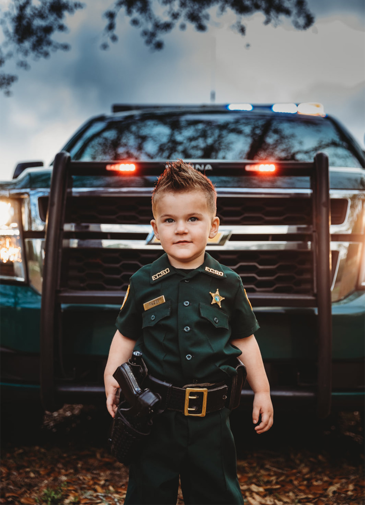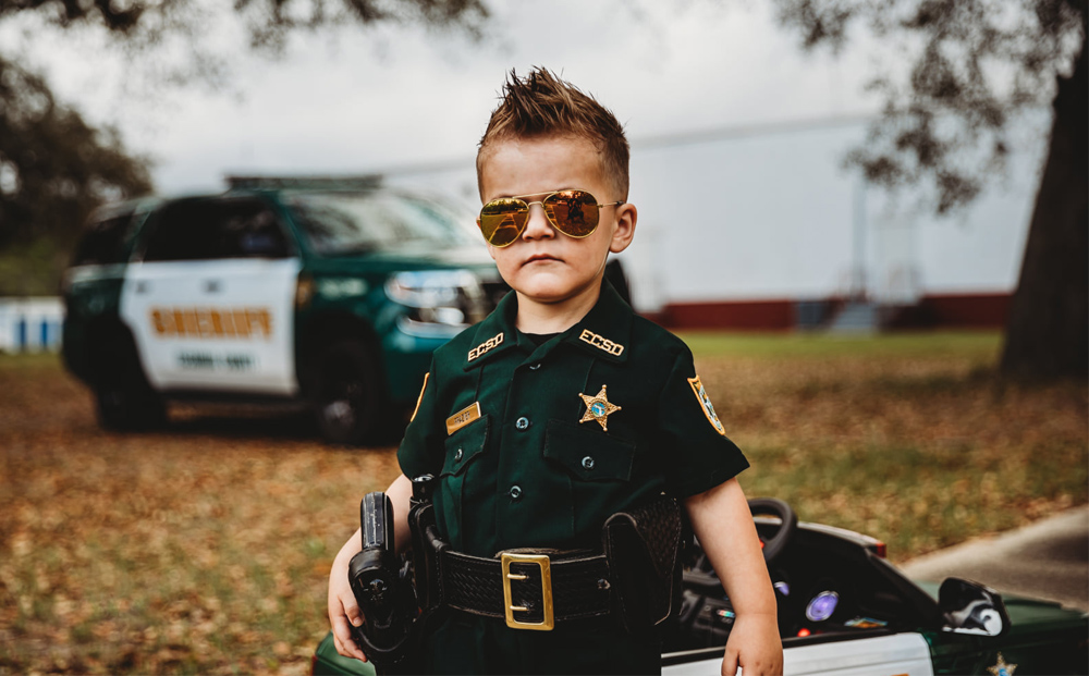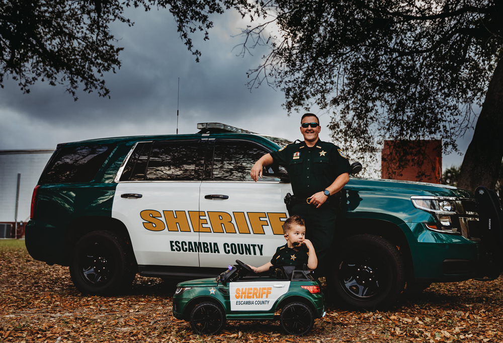 Three-year old Caisen Frazier wants to grow up to be just like his hero — his daddy, Escambia County Sheriff’s Office Lt. Patrick Frazier.