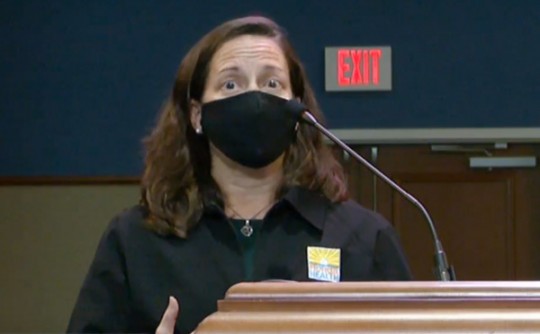 Pictured top: A clinic last week at the Walnut Hill Community Center where 28 people received the first dose of the Pfizer vaccine. Pictured inset: Florida Department of Health in Escambia County Administrator Marie Mott addresses the Escambia County Commission Thursday. NorthEscambia.com photo, click to enlarge.
