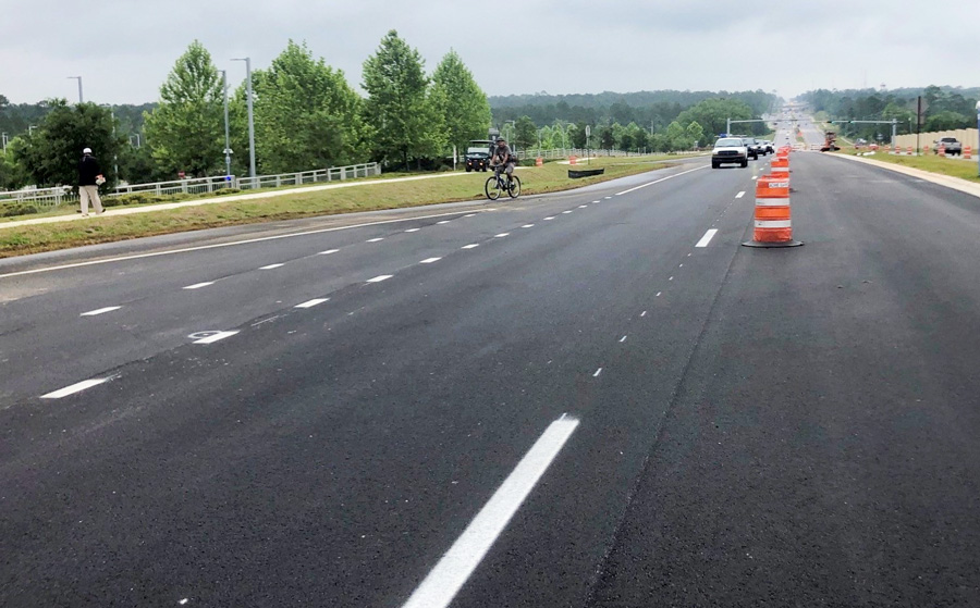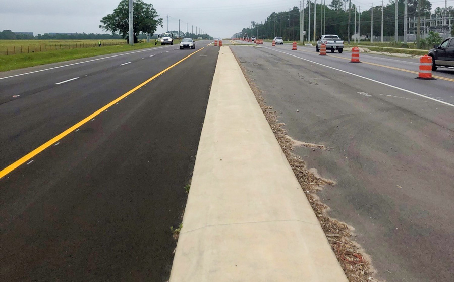 The photo below shows traffic using both westbound lanes opened between the new Beulah Middle School and Security Place. Eastbound traffic will remain in one lane as the remaining median work is completed.
