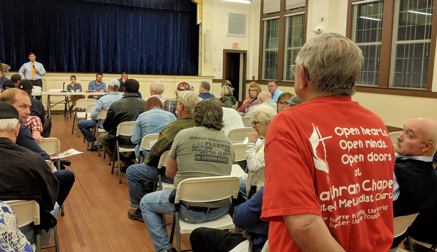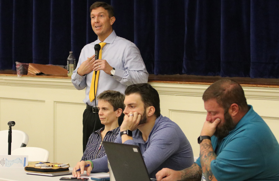 Pictured: Escambia County District 5 Commissioner Steven Barry at February 2019 town hall meeting at the Molino Community Center. NorthEscambia.com file photos.
