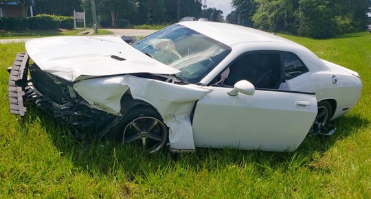A white Dodge Journey operated by a 34-year old Pensacola man was traveling north behind the Challenger and collided with the Taurus.
