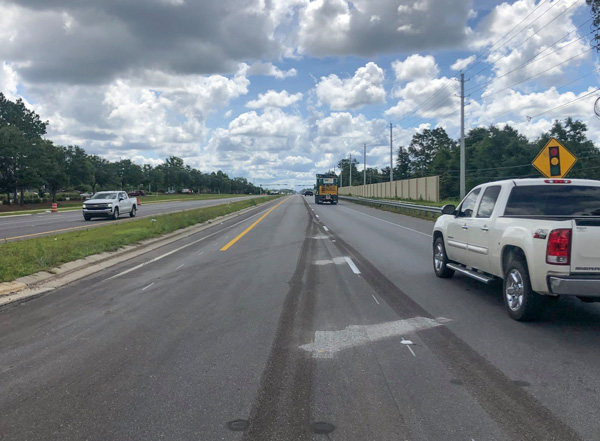 Crews are busy today removing and replacing striping on Nine Mile Road to open both eastbound lanes between Beulah Road and I-10. Currently, both eastbound lanes are open from Security Place to I-10 and the westbound roadway is open to both lanes from Beulah Road to Navy Federal Way. Photo for NorthEscambia.com, click to enlarge.