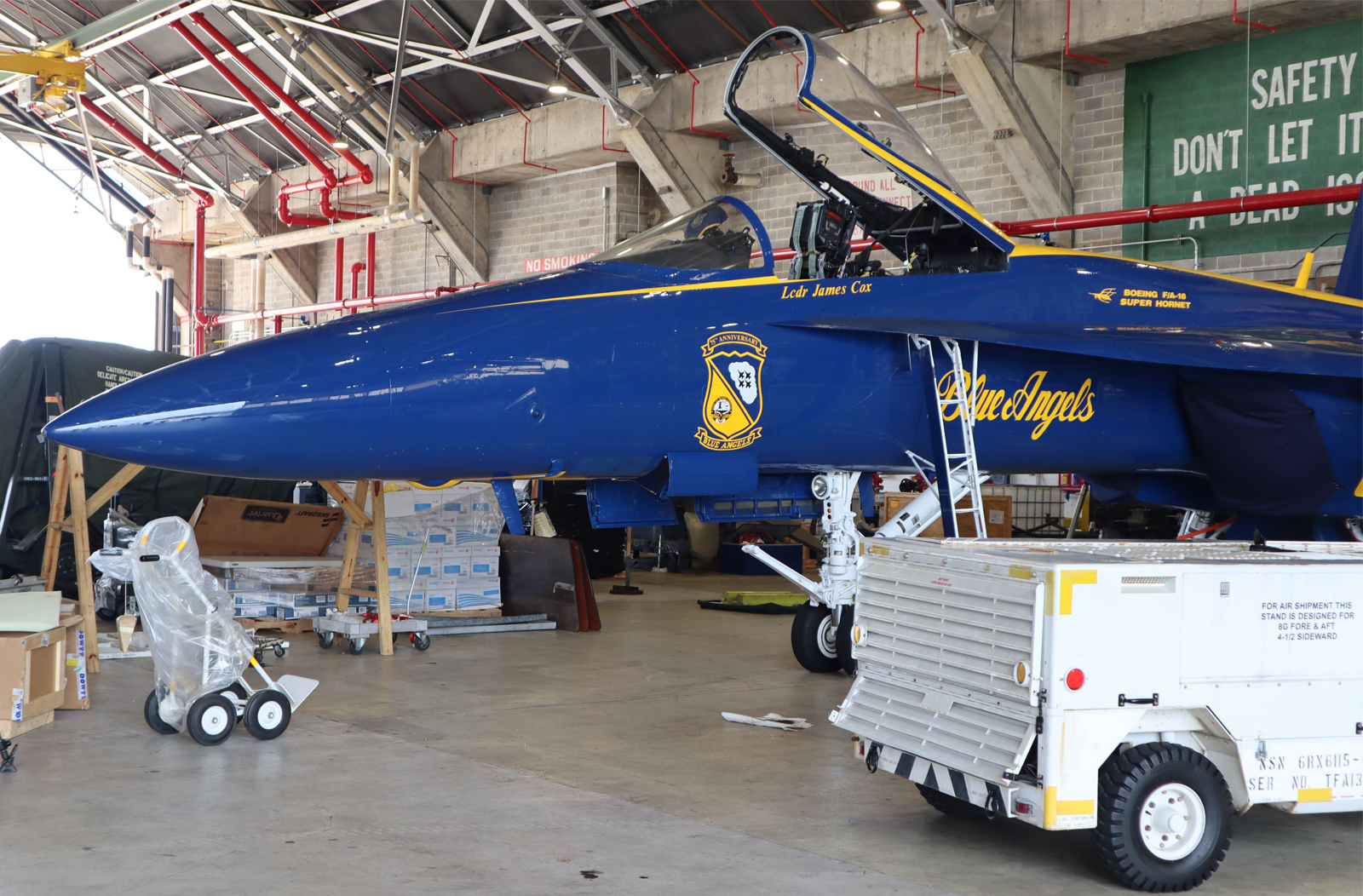 “Awesome experience, we had to get pretty creative in acquiring this aircraft. We got it from the United Kingdom from the Royal Air Force. We picked it up last year — the team out there Marshall Air Space, the contracted company did a fantastic job getting this aircraft prepped and ready for us. It’s kind of like buying a used car. We did a test flight in it to make sure all the systems work appropriately as advertised. It worked flawlessly — got to fly it back through a couple fuel stops in Iceland as well as Maine and Ft Worth Texas where we did some final maintenance checks before we brought it back home where it belongs in Pensacola, Florida. It’s a new J Model super Hercules very exciting. Coupling that with the 75th anniversary, and the new super hornet. As a pilot flying this aircraft it’s pretty exciting and I’m pretty lucky.
