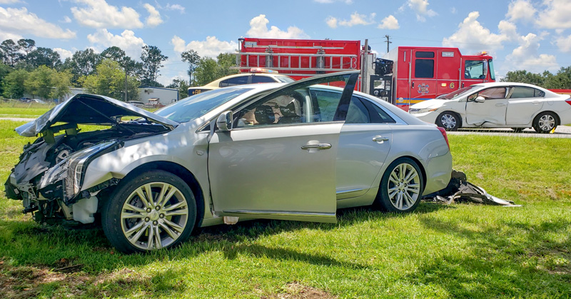At least one person was reported injured in a traffic crash Thursday afternoon on Highway 95A at East Roberts Road. The Florida Highway Patrol is investigating. NorthEscambia.com photos by Kristi Barbour, click to enlarge.