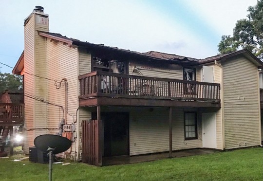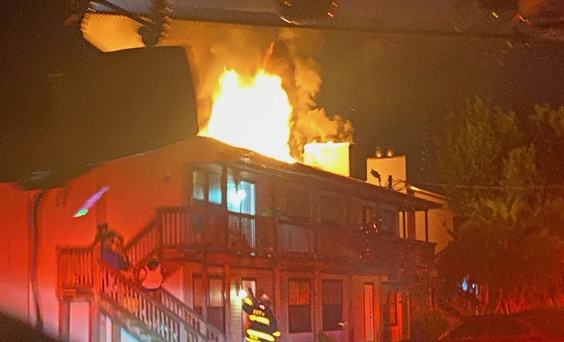 The fire originated in the second floor apartment and was through the roof when firefighters arrived. Four hose lines were rapidly deployed, stopping the fire from extending to the other units.