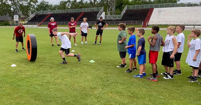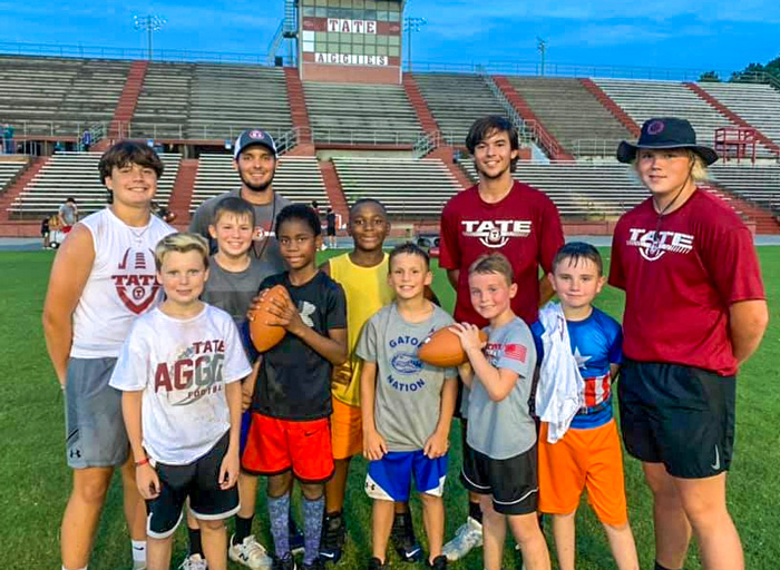 The camp was directed by the Tate coaching staff, assisted by Tate football players. It was an opportunity for attendees to work on fundamentals, practice agility, run through drills and learn about being part of a team.