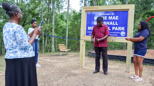 Saturday, 20 years after that horrible fire, the ribbon was cut on a new Escambia County Park dedicated in her honor — the Katie Mae Marshall Memorial Park. Once again, Miss Katie Mae, who passed away a decade ago, is again bringing the laughter of children back to North Cypress Street.