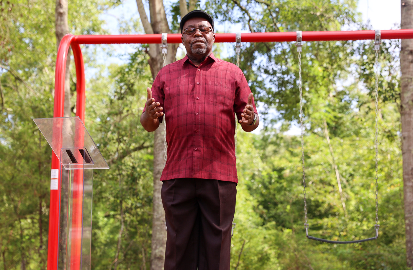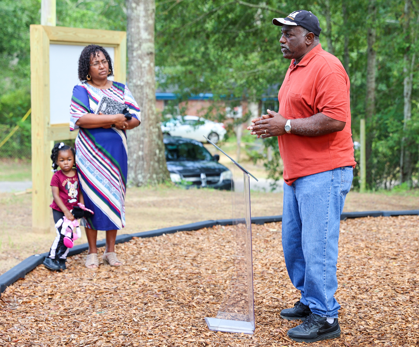 “It’s the first step. Over the next couple of years, we think we can continue adding,” Escambia County Commissioner Steven Barry told a small crowd at Saturday morning’s ribbon cutting. “Your community was in need of one (a park), and we are glad to be able to put that on the ground.”