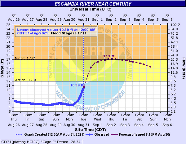 A flood warning is in effect for the Escambia River near Century from Wednesday afternoon to Thursday evening.