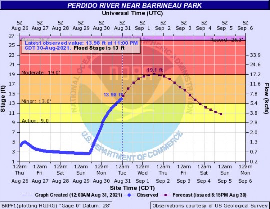 A flood warning is in effect for the Perdido River near Barrineau Park until early Saturday morning.