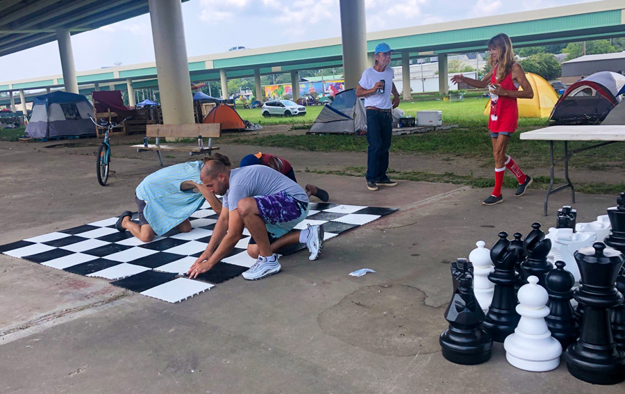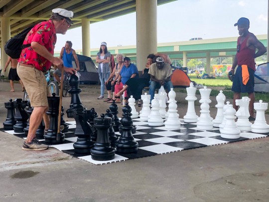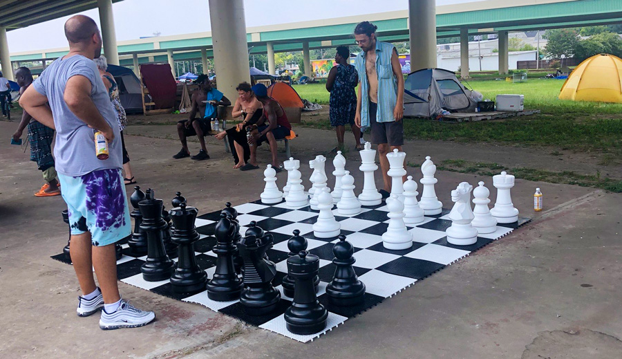 Sunday, he set up his oversized chess board in what might seem like a very unlikely place — a homeless camp under I-110 in Pensacola.