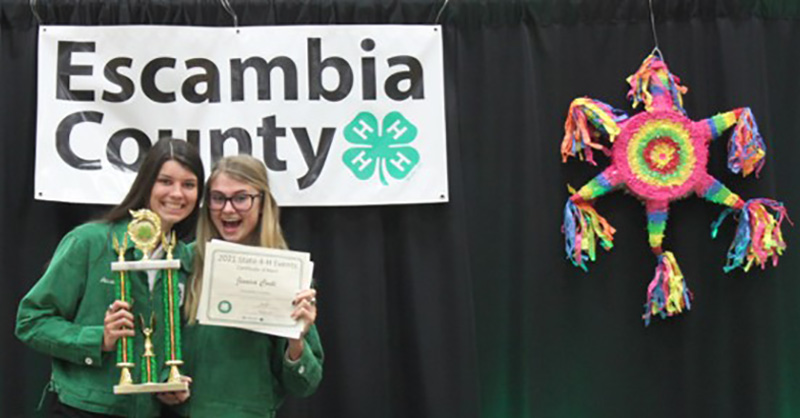 There were 249 youth in Escambia County that were enrolled in one of 16 4-H Clubs. Six Escambia County 4-H members placed first in their respective divisions at state competitive events; and two judging teams won their respective state contests. More than 1,000 youth from Escambia County schools participated in at least 6 hours of 4-H programming.