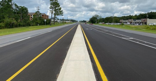 Pictured: This photo, taken between Bowman Avenue and Ashland Avenue (facing west) shows the new travel lanes, median, and median turn lanes. Photo for NorthEscambia.com, click to enlarge.