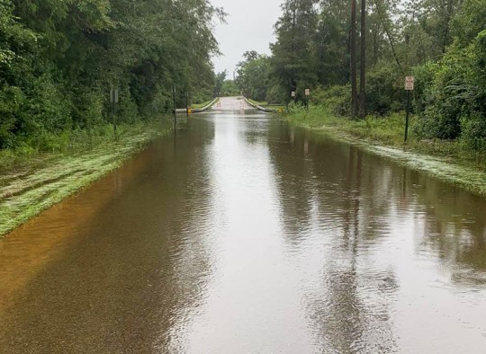 There was flooding Sunday at the intersection of Highway 29 and Highway 97 but that subsided. As is normal with heavy rain events, the Barrineau Park Bridge from Escambia County to Alabama is now underwater.