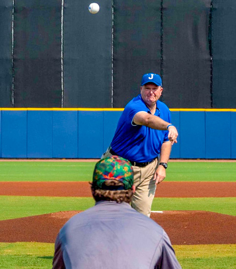 New principal Benjie West, a Jay graduate who took over June 4, threw out the first pitch.