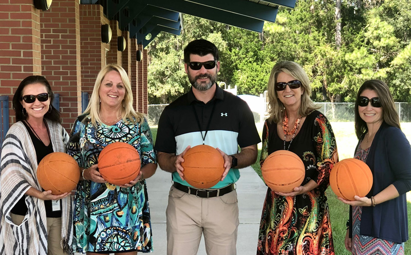 Pictured: (L-R) Jim Allen Elementary School’s Amanda Hall, Rene Johnson, Chip Coleman, Anne Fillingim and Rachel Cooley will use their grant for a project they are calling “NBA ‘22″. Photo for NorthEscambia.com, click to enlarge.