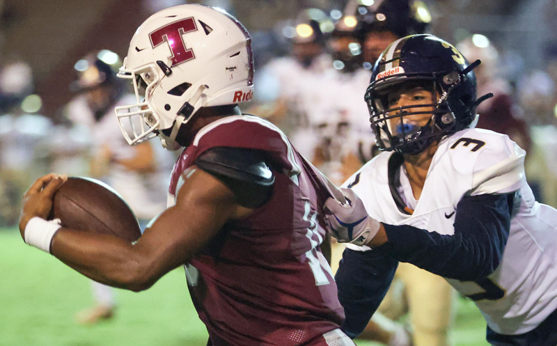 Pictured: The Tate Aggies gain yardage against the Gulf Breeze Dolphins Friday night at Tate. NorthEscambia.com photo, click to enlarge.