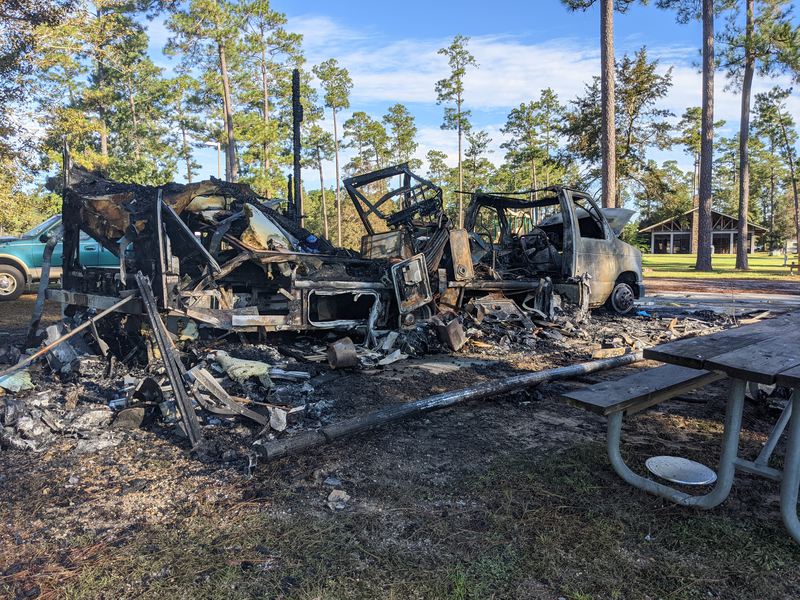 Other campers at the lake told NorthEscambia.com that they saw a gas can that did not belong near the camper after the fire, and they believed there may have been an attempt to block the camper doors from the outside. Those details have not been confirmed by the fire marshal. Escambia Fire Rescue and the Escambia County Sheriff’s Office referred us to the state for additional comment.