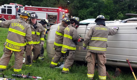 Pictured: Escambia County firefighters responded to numerous types of incidents in addition to fires, like this vehicle crash on Highway 29. NorthEscambia.com file photo.