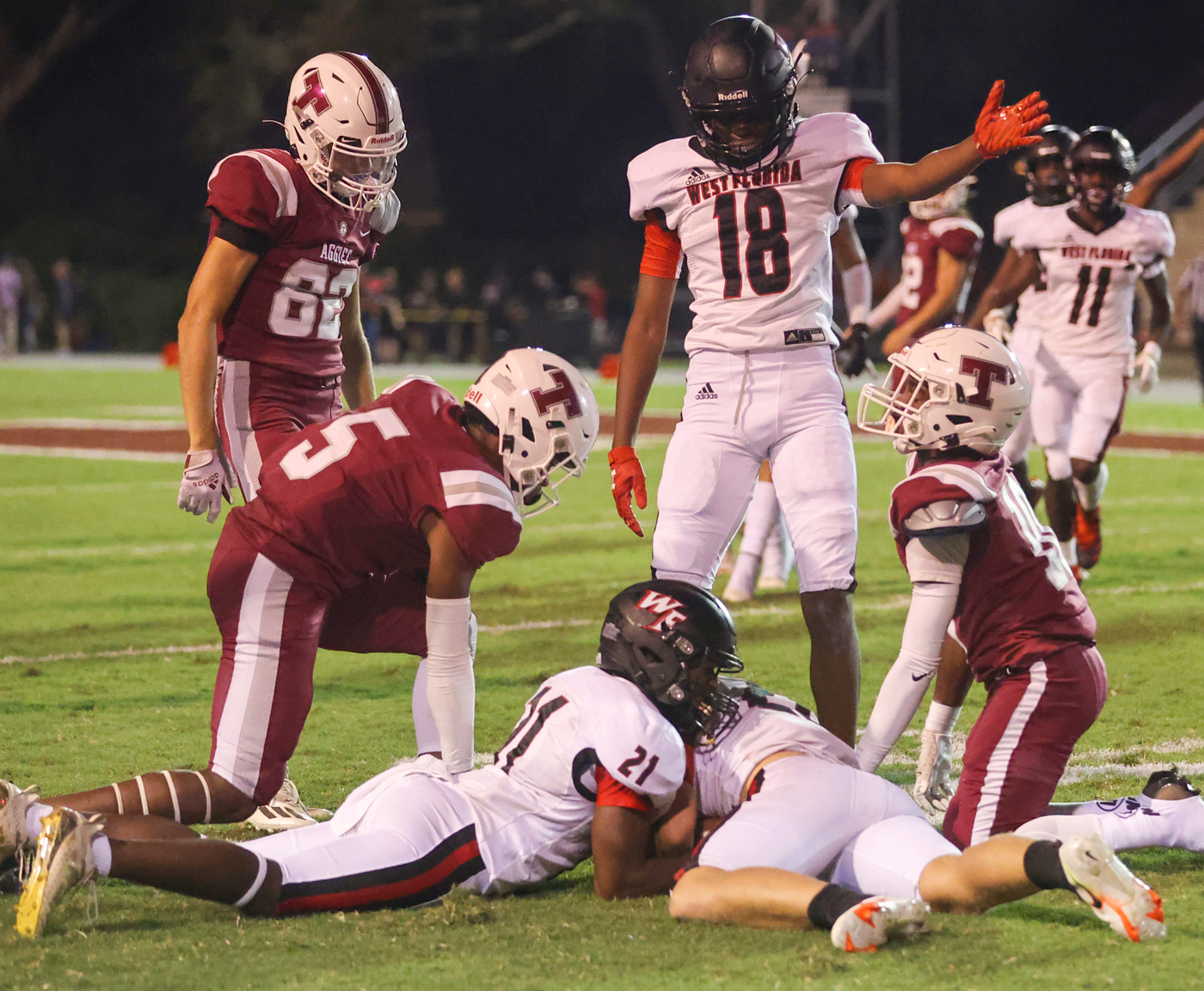 The visiting West Florida Jaguars blanked the Tate Aggies 44-0 Friday night at Pete Gindl Stadium.