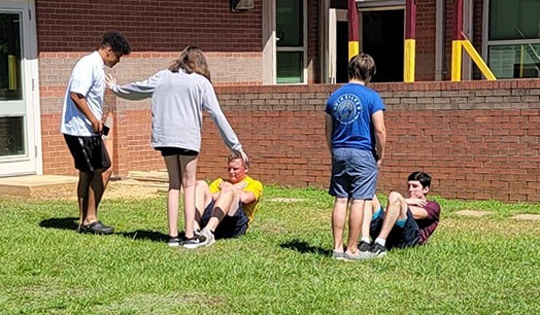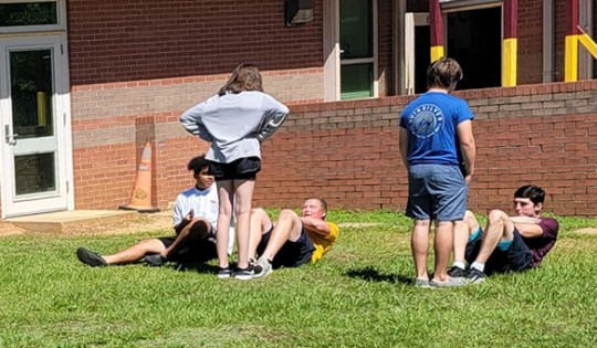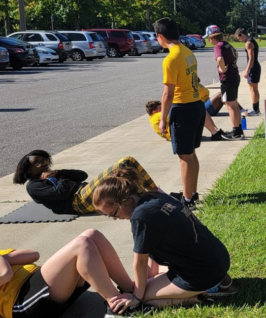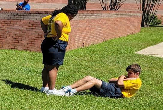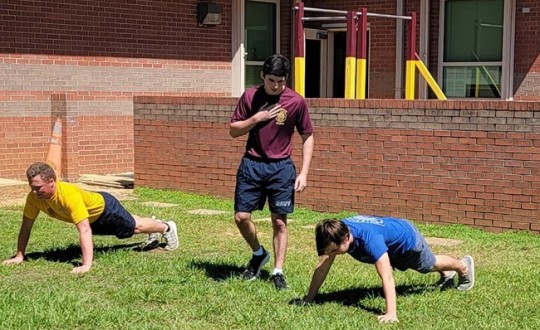 In honor of the first responders that lost their lives on 9/11 in New York City, all NJROTC classes at Northview High School did 110 squats, 110 pushups, 110 curl-ups and 110 jumping jacks in two-person teams Friday. Leaders said it was a time for the cadets to reflect, learn about dedication to duty and have a good workout.