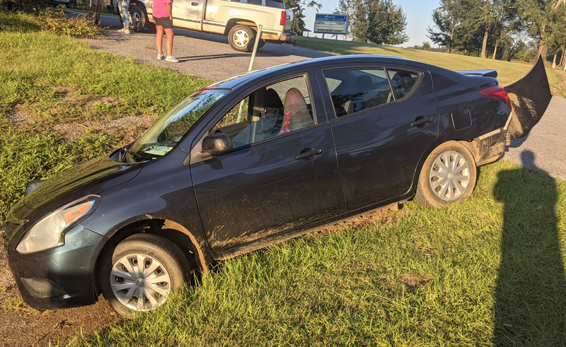The adult female driver of a Nissan Versa was westbound on Highway 4 near Godwin Cemetery Road when she ran off the road and crashed down into a concrete culvert at the entrance to Bratt Assembly of God Church.