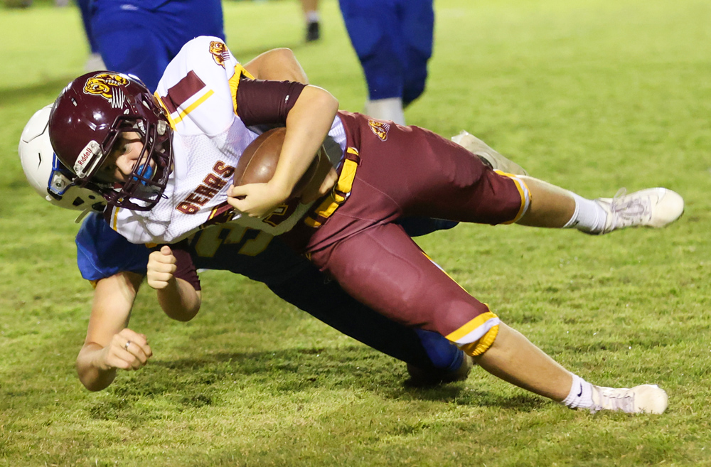 A couple of minutes later, Jamarkus Jefferson was in the end zone from two yards out for the Chiefs. With a good kick from Brandon Ferguson, the ballgame was in a 7-7 tie in Baker.