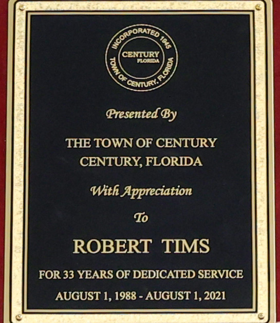Thank you Mr. Tims for your dedication to the town of Century . Thirty Three years is a long time but you kept on doing it day after day . If all employees would be as dedicated as Mr. Tim’s and all EMPLOYERS be just as dedicated to employees y’all might see Century be good again. Now wouldn’t that be something to see …..