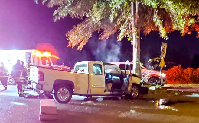 The Florida Highway Patrol said the 39-year old man was traveling south on Bowman Avenue about 8:30 p.m. and failed to navigate around a small raised roundabout in the center of the roadway at Kayzan Street. His white pickup truck collided with a tree located in the roundabout.