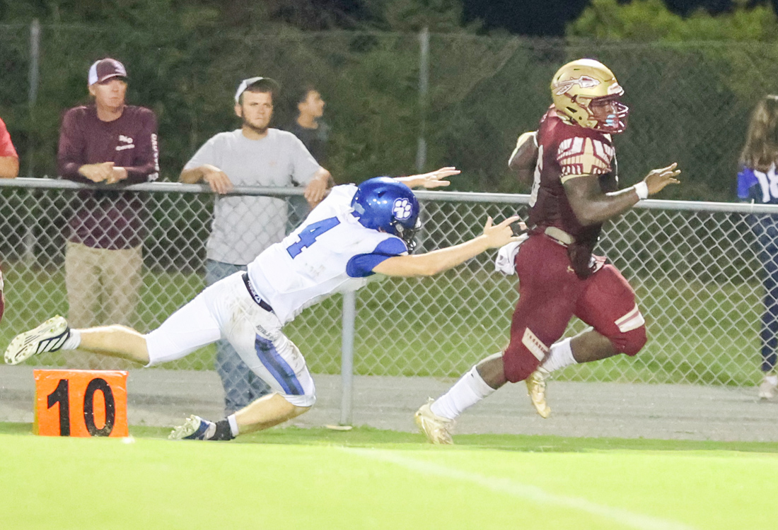On the second play of the game, quarterback Kaden Odom found Jamarkus Jefferson for a 62-yard touchdown run, his first of four for the night. On the next possession a misguided toss from Jay quarterback Cason Burkett was intercepted by sophomore Luke Bridges, who had three total touchdowns Friday night.