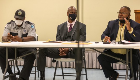 Pictured above and below: The Carver Community Center on Jefferson Avenue in Century. Pictured top inset: Consultant Robin Phillips. Pictured bottom: A special town council meeting on the grant application. NorthEscambia.com photos, click to enlarge.