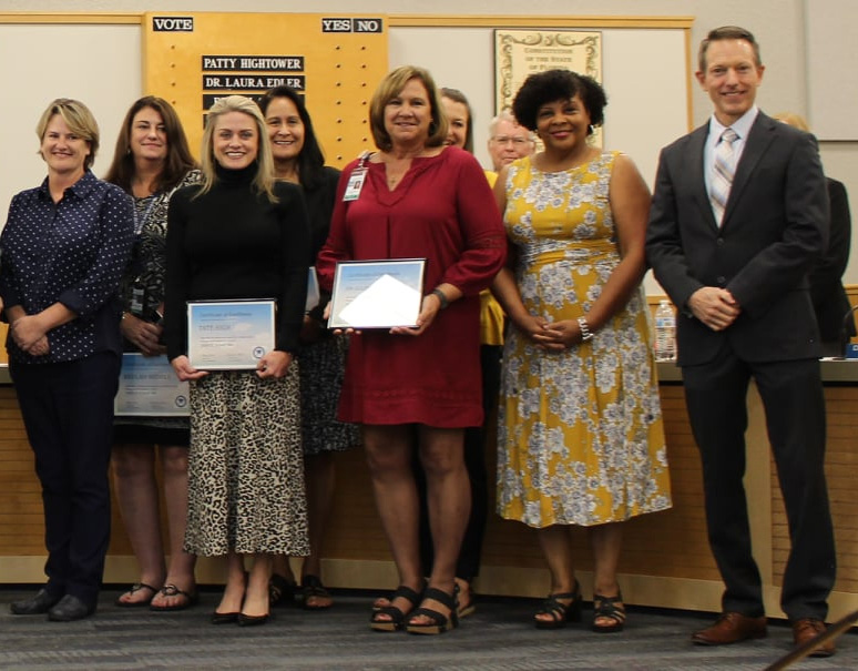 Representatives from each school were on hand to receive certificates at the school board meeting.