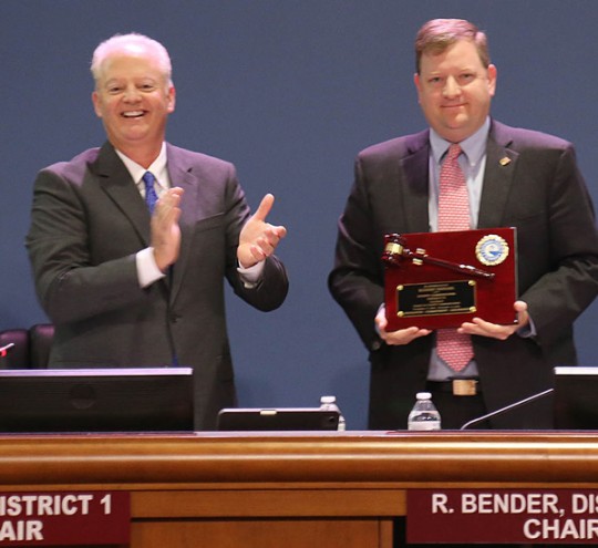 For the next year, District 1 Commissioner Jeff Bergosh will serve as the new chairman and District 2 Commissioner Doug Underhill as the vice chairman. A scheduled rotation takes place each year.