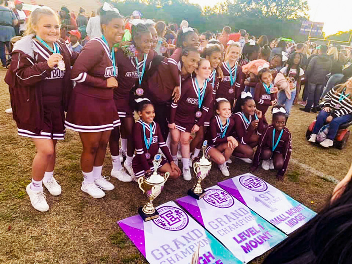 The Cantonment Cowboy cheerleaders won multiple awards at the Emerald Coast Cheer Association competition recently at Pace High School.