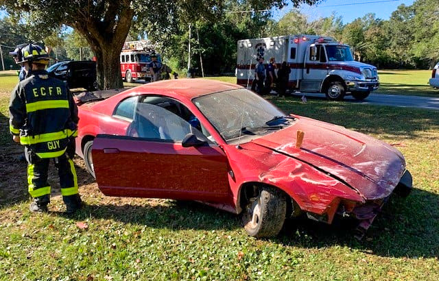 The Florida Highway Patrol said the 18-year old female driver of a Ford Mustang failed to negotiate a curve and collided with the home. The homeowner was inside the residence at the time of the crash, but was also not injured.