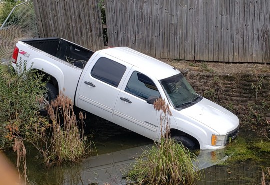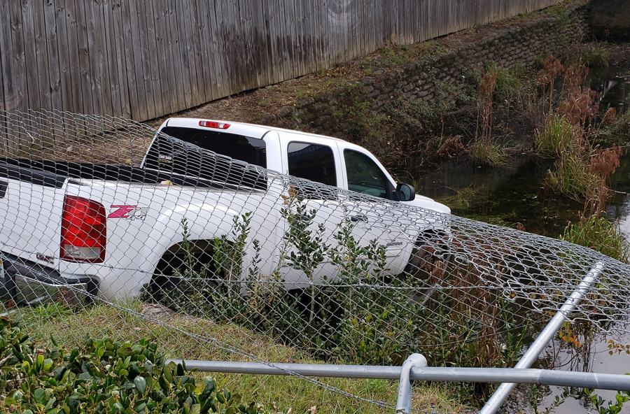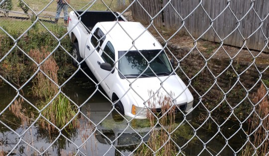Driver Crashes Pickup Truck Into Nine Mile Road Retention Pond