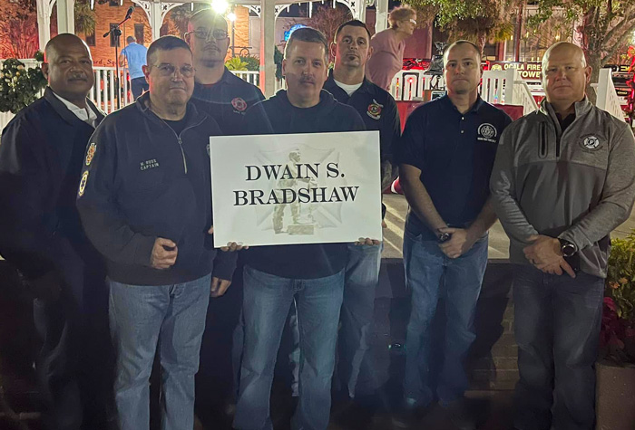Bradshaw, 41, lost his life during the early morning hours of November 2019 in the line of duty on scene of a fatal crash on the Muscogee Bridge. He was a volunteer district chief at the Bellview Station of Escambia Fire Rescue, volunteer assistant district chief for the Beulah Station of Escambia Fire Rescue, and lived a life of public service.