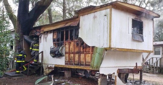 Pictured: A resident was injured and a cat was rescued during a mobile home fire December 3, 2020, in the 600 block of East 10 Mile Road. NorthEscambia.com file photos, click to enlarge.