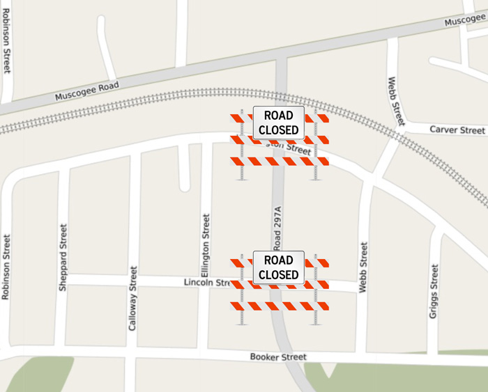 Local traffic will be detoured in the surrounding neighborhood. All other through traffic should use County Road 97 between Muscogee Road and Kingsfield Road.