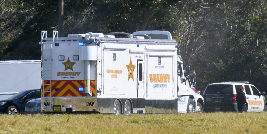 The massive search involved the Escambia County Sheriff’s Office, the ECSO SWAT team, the Florida Fish and Wildlife Conservation Commission (FWC), Escambia Fire Rescue, Escambia County EMS, Escambia Search and Rescue, and other agencies. The Escambia Sheriff’s Office mobile command center was also on site.