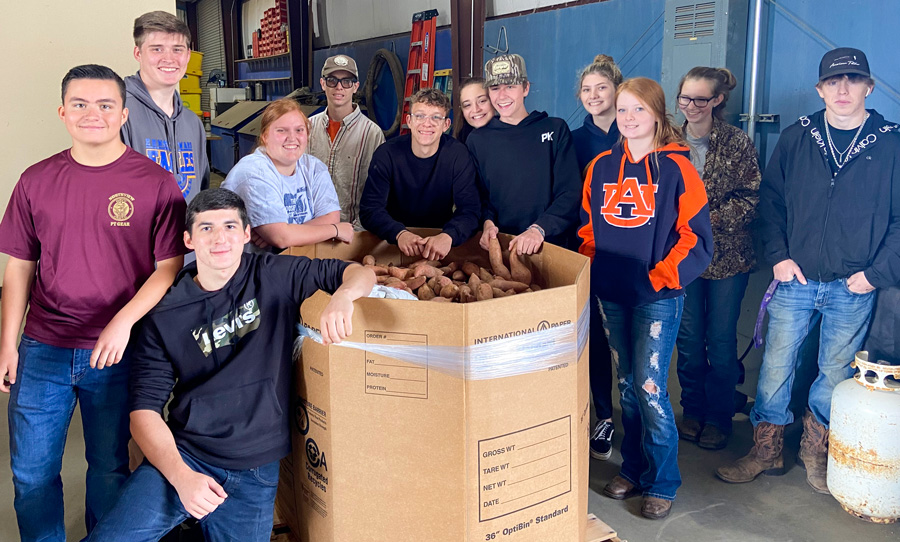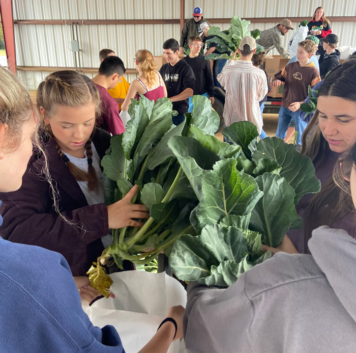Students and volunteers from Escambia and Santa Rosa counties worked in fields near Jay Monday to harvest vegetables that will help feed 1,000 needy families this week for Thanksgiving.