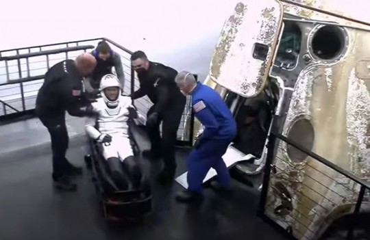 “Endeavour, on behalf of SpaceX, welcome home to planet Earth,” flight control told the crew after confirmation of splashdown.