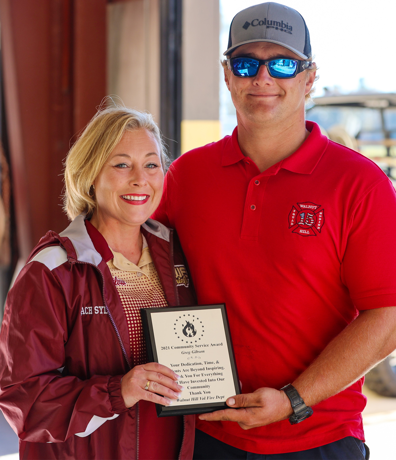 “He has changed many lives. His memory and actions will continue changing people’s lives forever,” Walnut Hill Chief Kevin Mininger said about Greg Gibson Saturday before presenting the award to his wife, Sylvia Gibson.