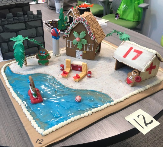 Third place with 112 votes was number 12 with a tropical gingerbread beach scene.